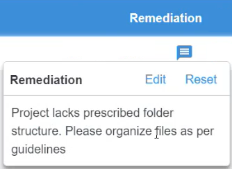 | Remediation | Click ![]() Note: - To change the remediation details, click Edit. Make the required changes and click Save. The updated details are saved. - To reset the changes, click Reset. The changes are removed, and the previous remediation appears. |