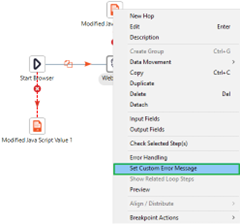 On the canvas, select and right-click the step to which you want to add the custom error message. The contextual menu appears.