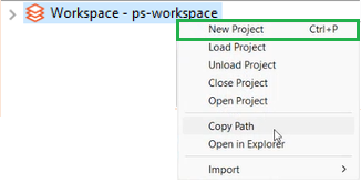 Click Create. The new project appears under the open workspace in the Project Explorer.