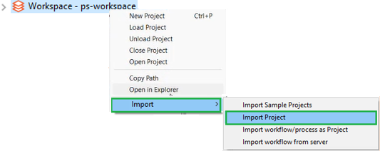 You can also import workflows or processes as a project from other workspaces to your current workspace.