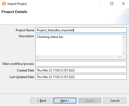 Click Finish. The workflow is imported successfully as a project in the Process Studio.