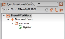 In the Process Studio, click the Sync Shared Workflow pane. The list of shared workflows that need to be synced appears.