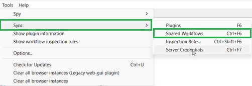 Click Tools 🡪 Sync 🡪 Shared Workflows. The workflows are synced.