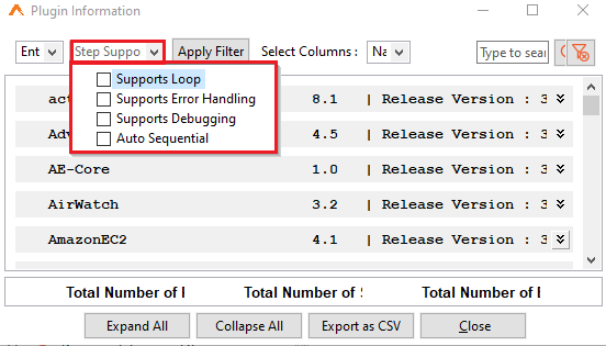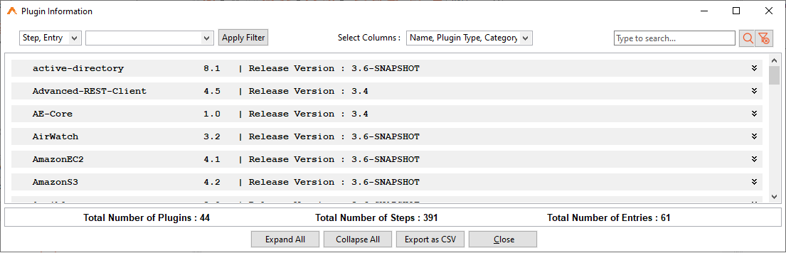 Use Export as CSV to export the plugin details in CSV format.