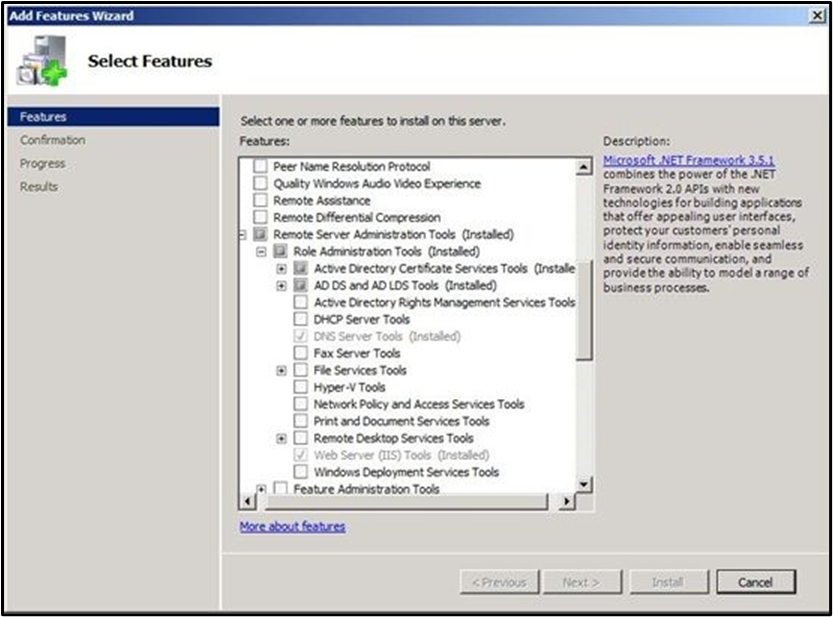 - Requires Microsoft .NET Framework 4.5 or above. You can install Microsoft .NET Framework 4.5 or above by following the instructions at Installing the .NET Framework. Step 2: Enable Tools If you have to install management tools on Windows Server 2008, Windows Server 2008 R2, Windows Server 2012, or Windows Server 2012 R2 for specific roles or features that are running on remote servers, you don't have to install additional software. Start the Add Features Wizard in Windows Server 2008 or Windows Server 2008 R2 or the Add Roles and Features Wizard in Windows Server 2012 and later versions. Then, on the Select Features page, expand Remote Server Administration Tools, and then select the tools that you want to install. Complete the wizard to install your management tools.
