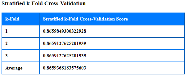 | 5 | Shuffle | For Stratified k-Fold Cross-Validation: Data Types allowed: boolean, optional (default=True) - Whether to shuffle each class’s samples before splitting into batches. |